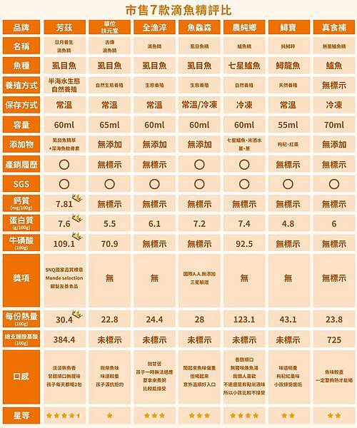 今天就來分享一下我對於市面上七大品牌的滴魚精的不負責任評比。